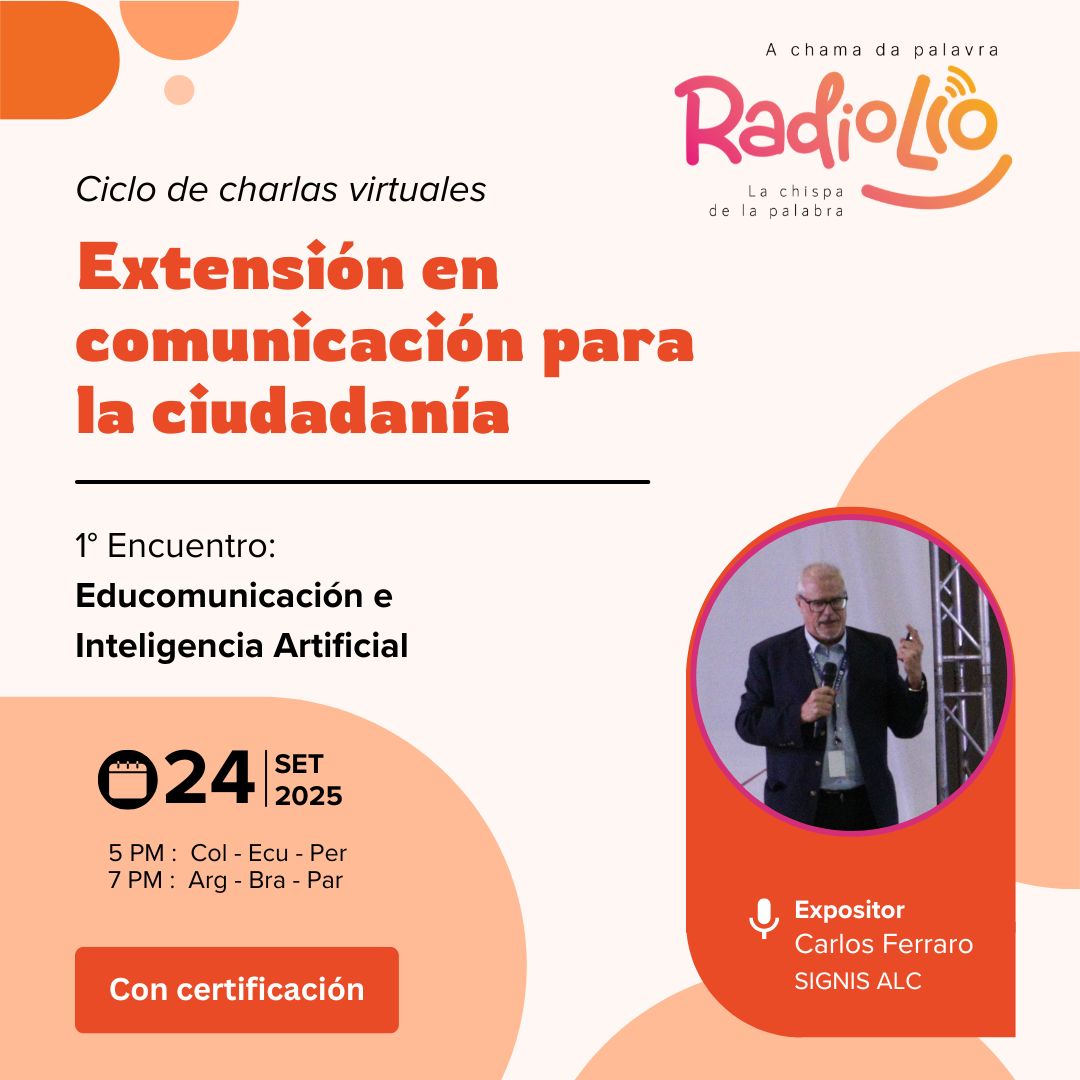 Radio Lío, de Signis ALC, realizará un nuevo ciclo de formación con diversas charlas sobre “Extensión en comunicación para la ciudadanía”. El primer encuentro, que abordará la Educomunicación y la Inteligencia Artificial, se realizará de manera online el día miércoles...